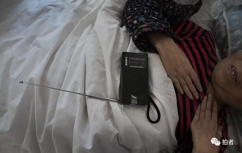 △3月14日,北京松堂医院,一位卧病在床的老人在听收音机。