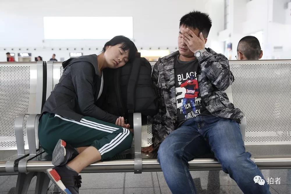 △5月13日,成都西站,王永福和干姐姐正在候车室候车,准备回到王永福阔别19年的家乡——崇州。因为前一天晚上只睡了几个小时,俩人都有点儿犯困。