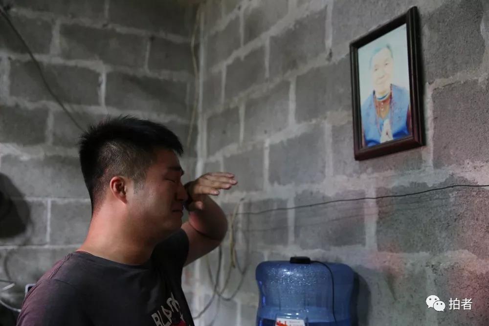 △5月14日,王桥村,王永福回家看到墙上奶奶的遗像,忍不住落泪。他说,小时候奶奶对他最好。