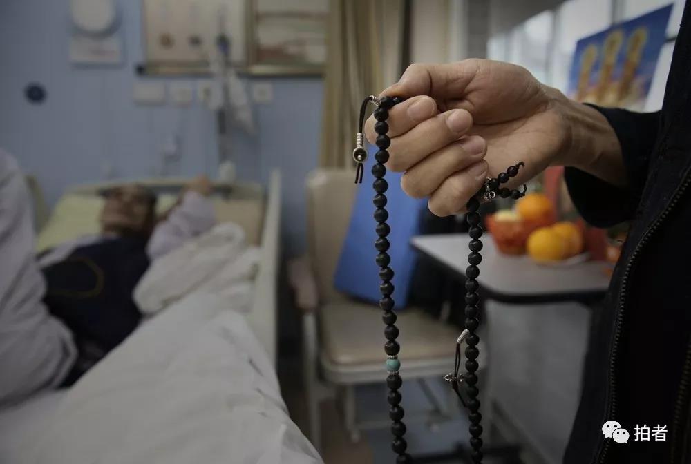 △10月16日,北京大学首钢医院安宁疗护中心,病人妻子手握佛珠陪伴在侧。他们两个都是佛教徒,认为佛经能让自己的内心获得平静。