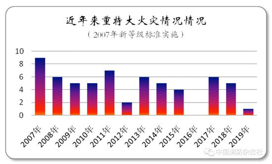 2019年是近七年来火灾起数和伤亡人数最少的一年。全年仅发生重大火灾1起,特别重大火灾则连续四年实现了零发生。