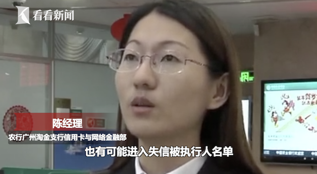 银行工作人员称,熊先生需要尽快将钱款还上,还不上的话,个人征信上会显示永远呆账。