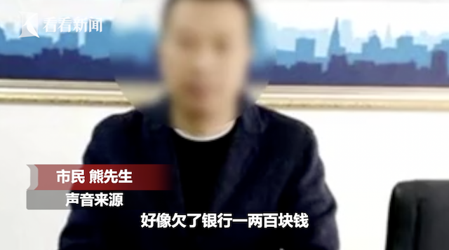 当事人熊先生表示,大学毕业以后卡找不到,也没去管它,隐隐约约回忆起来,好像是欠了银行一两百块钱。一直没管,一直滚到2015年,银行把那张卡注销了。