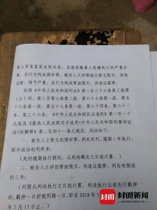 2020年1月18日,封面新闻记者从受害者罗贝贝父亲罗志杰处获悉,该案被告人王修文因犯强奸罪,一审被依法判处死刑,缓期二年执行。