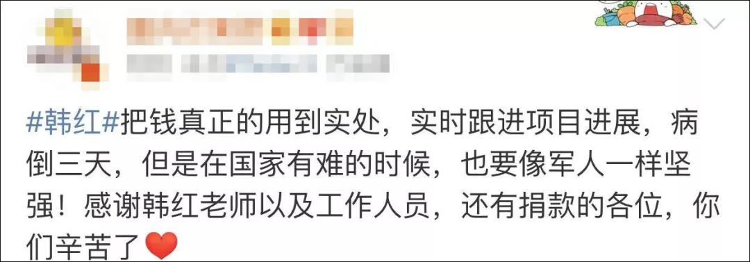 此前,韩红曾在接受采访时表示,自己做慈善之后最大的经验就是一定要亲手把钱给受助者,并且明白“原来即便是一包方便面也可以公示”;