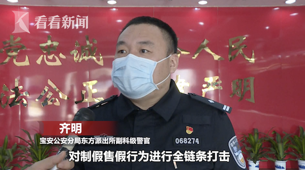 宝安公安分局东方派出所副科级警官齐明表示:“这个案件我们会继续加大打击力度,对上下家进行溯源,对制假售假行为进行全链条打击,对辖区内药店、商行、便利店等场所进行严格排查,把群众的安危放在心上,把疫情的防控扛在肩上。”
