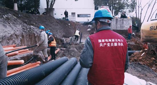 视频中有一个细节引起了不少网友的关注:施工基建人员装扮基本统一,却有不同颜色的背心,有人的红背心上还绣着“共产党员服务队”的字样。