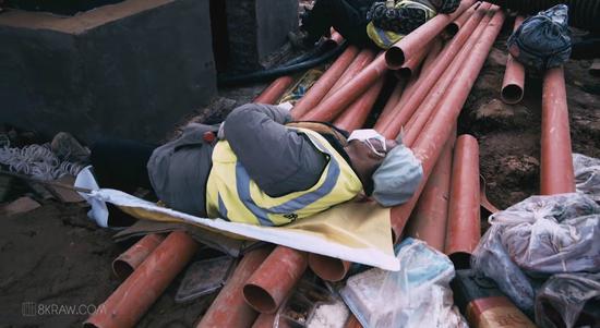 当然,画面中最美的,还要数从全国各地赶来的基建人。镜头中,一组一线基建人戴着口罩,枕在施工材料上休息,身边散落着餐盒的画面,让网友看得既心疼,又忍不住点赞——“哪里有什么‘基建英雄’,不过是质朴善良勤奋团结的逆行者!”。