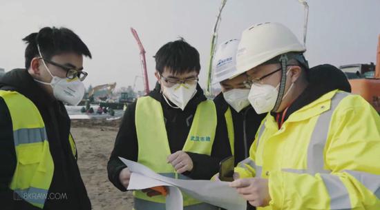“在现场完全感觉不到工人对病毒的恐慌,大家都在专心做自己的事情。工地中火热的干劲,以及工人们的敬业与不焦虑,同城市空无一人的街巷、上升的感染数字形成强烈的对比,给我在两个世界穿梭的感觉。”为了这部短片的拍摄,摄影师罗浩每天凌晨五点便赶到工地,一“蹲”就是十天。在武汉生活工作的他,如此描述这段拍摄经历给自己的感受。