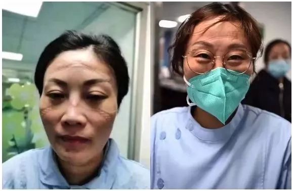 长时间戴着护目镜,在医护人员的鼻梁和面部留下了深深的压痕,甚至是压伤 图片来源于网络事实上,穿着厚实的防护服,戴着口罩、帽子、护目镜是非常闷热的。“光是穿脱就要一些时间,很多照片里医护人员脸上的压痕也都是经常会有的,我们叫它压创。”冯亮说,尤其是男孩子更容易出汗,“我们一个男同事,下了班,汗水是可以直接从鞋子里倒出来的”。