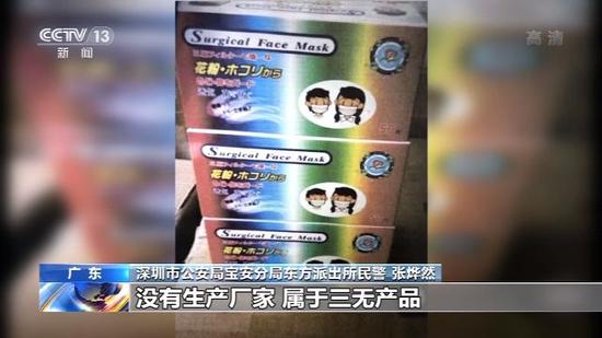 深圳市公安局宝安分局东方派出所民警 张烨然:“N95”白色的,但是上面有明显的污渍,我们怀疑是二手口罩,还有一种上面全是日文,没有生产厂家,属于三无产品。
