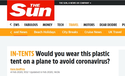 不过《太阳报》表示,现在,它可能会成为一种避免在飞机上感染病毒的明智选择——尽管“穿”上它会显得自己非常不时尚。