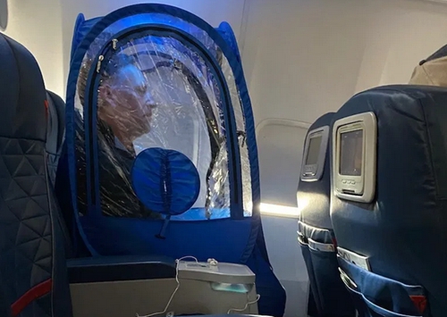 《太阳报》说,里克还曾在飞机上亲身体验过这种防疫方式。他的家人描述说,“他想看看自己发明的‘运动帐篷’(StadiumPod)如何在飞机上起作用……他告诉我,空姐很高兴地帮他拍照,坐在他旁边的那个人甚至连眼睛都没眨一下。待在那儿安全着呢!”