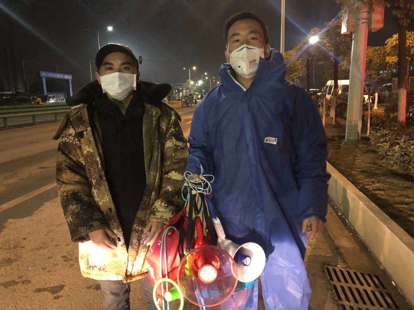 1月31日,鲁磨路救援队把火神山项目现场调度所需扩音器送达目的地