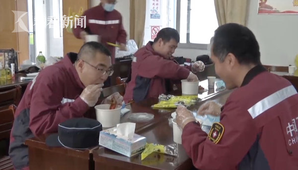 中午十二点,青年志愿者们把刚刚出锅装好的第一批80份“油焖大虾”送到了东西湖区疾控中心。来自陕西和北京的援鄂疾控队员们看到是湖北特色“油焖大虾”,纷纷拿起手机拍照留念。大虾送去的时候正好是他们的午饭时间,队员们赶紧打开保鲜盒趁热尝鲜。