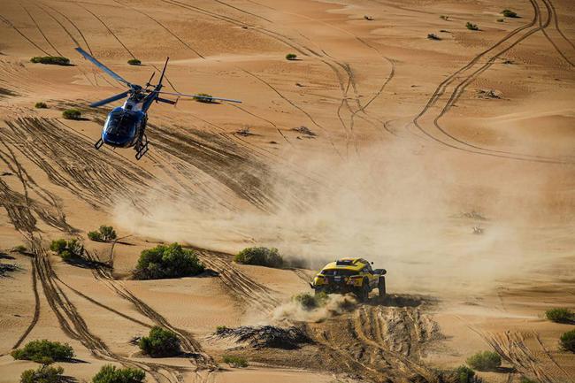 随着比赛逐渐进入尾声,当日进行的第十一赛段在竞争激烈的汽车组中成为兵家必争之地,把握住最后的机会,是所有赛手及车队在今天比赛中的主命题。相较于缩水版的SS10而言,当日进行的第十一赛段可以称得上纯粹的马拉松赛段比拼,近乎80%的纯沙漠赛段暗藏不规则路线并布满鸡窝坑,给一众赛手带来了不小的考验。