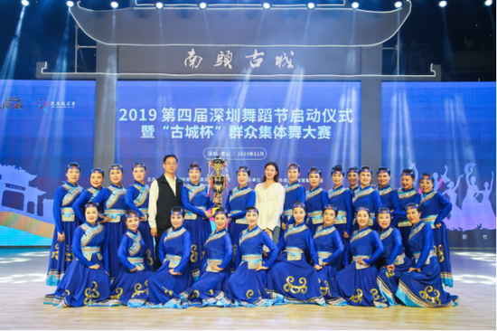 有一种舞蹈可以全城共舞,她舞动是健康的活力,舞动的是自信的魅力,这就是第四届深圳舞蹈节的群众集体舞大赛。自启动以来,“古城杯”群众集体舞大赛以线上报名海选的方式吸引了53支舞团参加和大批亲友及粉丝的关注和热捧,活动开展的如火如荼,比赛期间,有44万人次通过互联网观看在线图片直播并下载精美比赛图片。经过2场预赛的激烈比拼,共有16支 团队过关斩将携手挺进总决赛。决赛表演的舞种兼具多元化、群众性和艺术性,包括民族舞、汉唐舞、当代芭蕾舞、健身操舞、健康舞等。美轮美奂的舞台,图片直 播以及观众的助威更增添了晚会的热烈氛围。参赛队伍热情高涨,每支团队都拼尽全力向冠军宝座冲刺,芭蕾舞端庄典雅,汉唐舞婀娜多姿,健身操舞动感欢快,民 族舞优雅唯美……来自全市各区的300多名参赛队员倾情演绎,为现场观众带来一场视觉与听觉的盛宴。比赛结束后许多观众还意犹未尽,连连称赞这是一场高大上的群众舞蹈赛事。