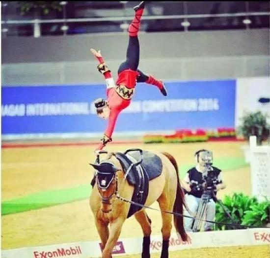 马术体操—Equestrian Vaulting,顾名思义就是在马背上进行体操动作,这项运动是国际马联官方认可的10个正式马术项目之一。