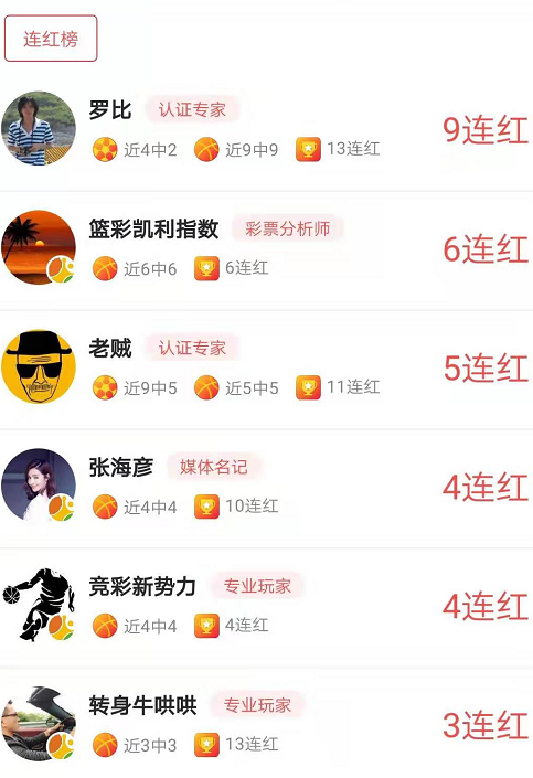周一NBA战罢,球通专家全面爆发!罗比篮彩豪取9连红,近3日累计盈利639%排名第一!篮彩凯利指数6连红,紧随其后!老贼5连红;张海彦、竞彩新势力均为4连红!