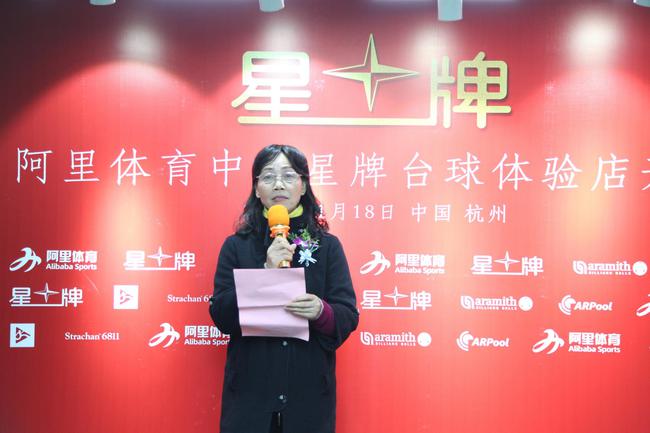 浙江省台球协会常务副秘书长徐爱芬在开业仪式上指出,近年来中国台球运动发展迅速,浙江作为台球运动发展较好的省份,近来来在协会领导的指导下和各家厂商的支持下,有越来越多的台球爱好者参与到台球运动中来。希望阿里体育与星牌的合作能为浙江台球运动带来新气象,新发展。
