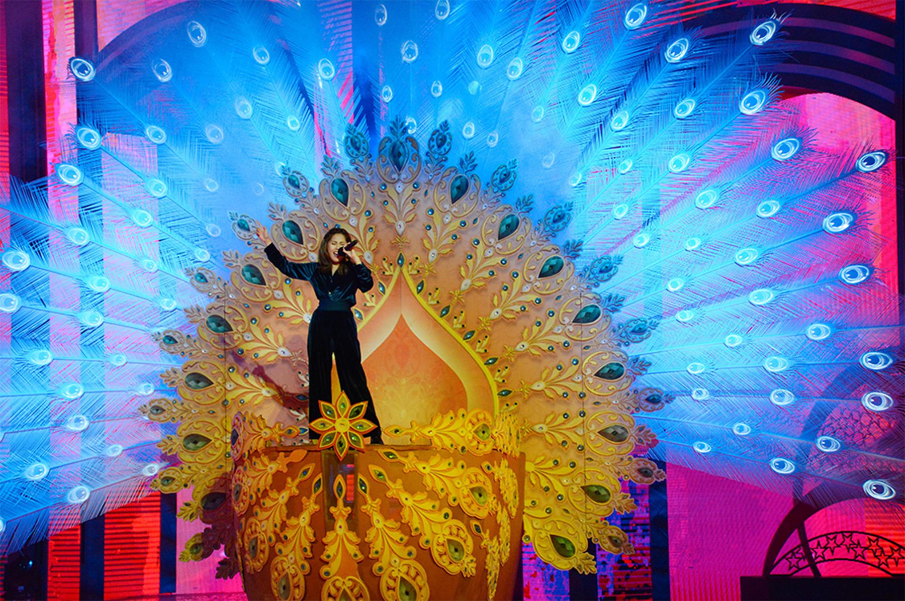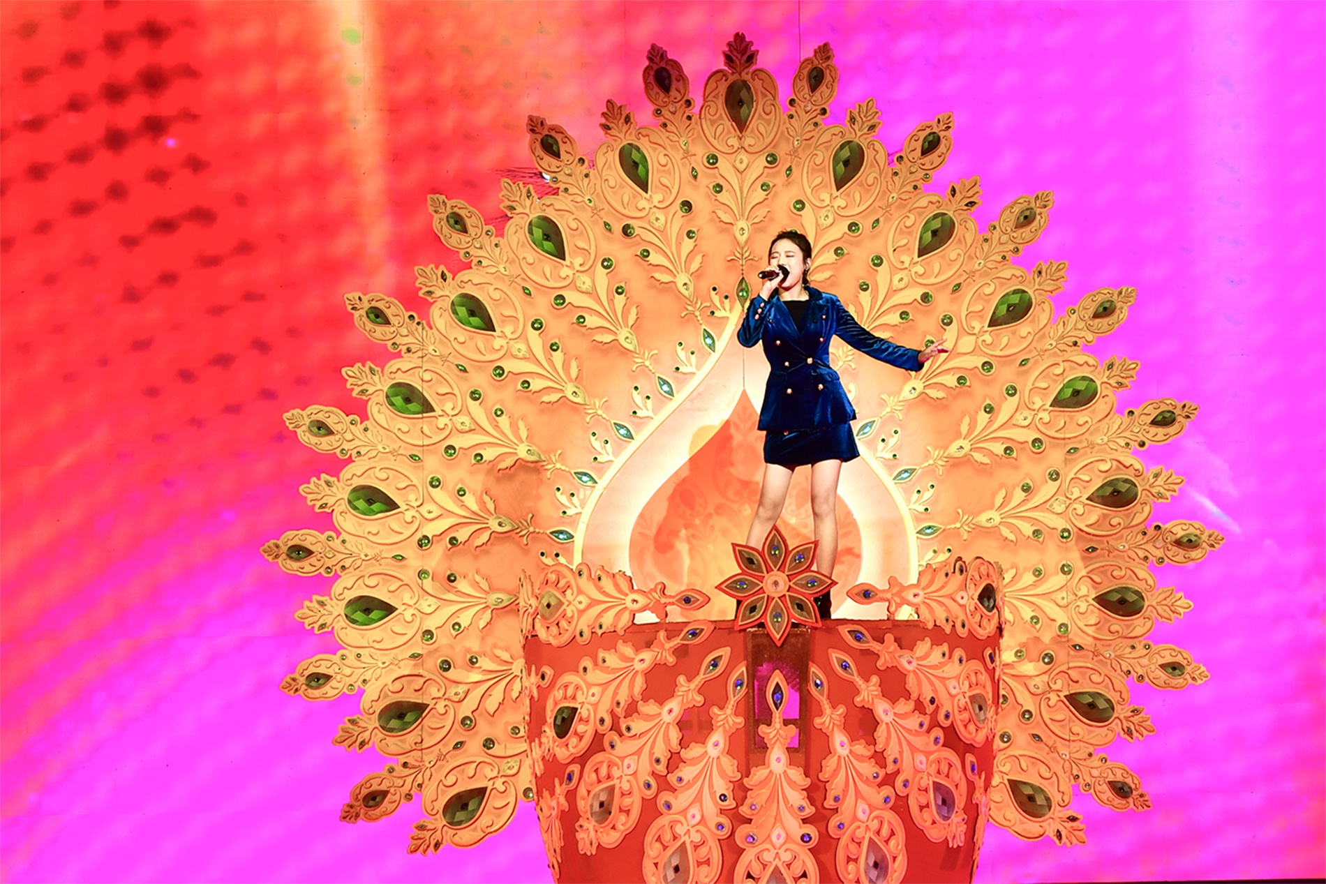 在去年的《我要上春晚》中,于毅搭档蒙古族歌手敖日其楞和藏族歌手扎西平措演唱了《牧歌》,并最终登上春晚的舞台。今年他怀揣着同样的愿望找到了斯丹曼簇、古洁縈、曾慧兰这三位来自不同国家的姑娘,希望她们能代表各自的国家登上春晚的舞台。彩排现场斯丹曼簇与古洁縈惊人的唱功与舞台表现力就深深吸引了工作人员,引的大家不断夸赞。录制当天,战甲披身的“三姐妹”似乎与巨型唯美道具“孔雀”融为一体,酣畅淋漓,共同打造出一个完美的舞台。三位姑娘也没有辜负于毅和张英席老师的重托,一曲完毕将现场的气氛带至高潮,就连蔡国庆老师也忍不住上台帮她们拉票,现场与三位姑娘合唱了一首云南民歌《小河淌水》,为她们加油打气!