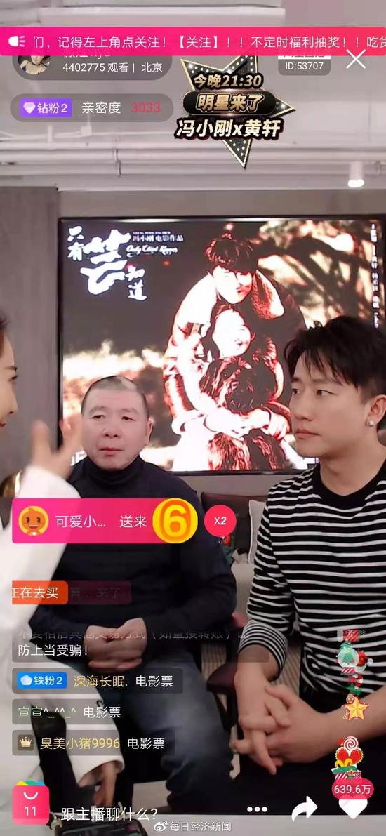 12月23日晚间,冯小刚和黄轩,也加入了“直播卖票”的行列。