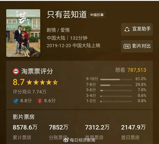 与之对应的是,《只有芸知道》上映4天,累积票房才在8500万元左右,被3.7亿元票房的同期上映电影《叶问4》甩在身后。要知道,冯小刚早在2004年的《天下无贼》之后,就保持了10部执导的电影均票房过亿的成绩。2017年底上映的《芳华》,票房更是超过了14亿元。