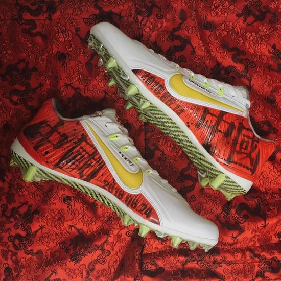其实最早认识小明是因为在 NFL 官方的粉丝活动评选中看到一双定制的美式足球比赛用鞋,出于好奇便留言询问作者的微信,没想到官方还真给了答复。