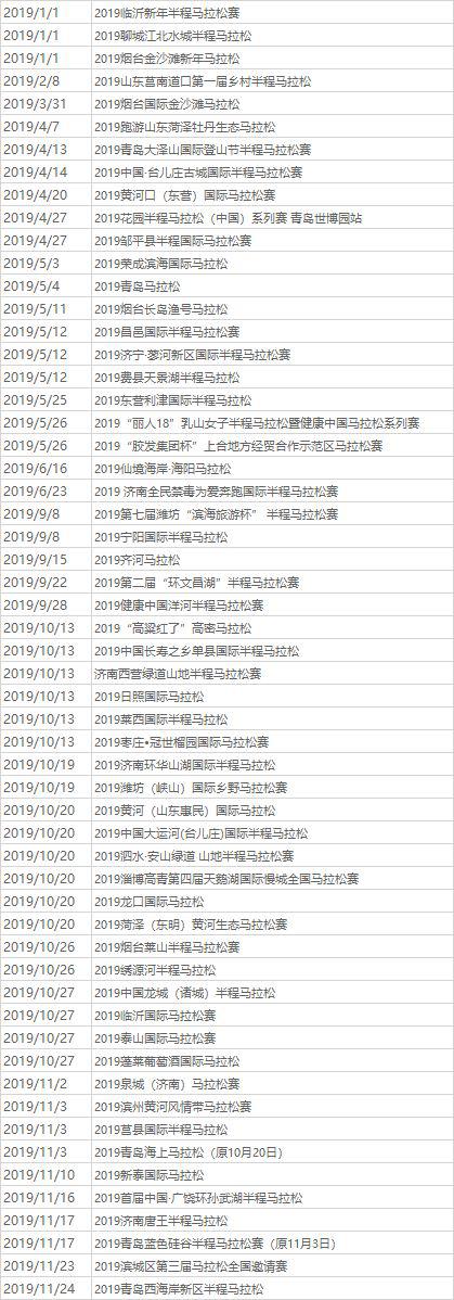 山东省共辖16个地级市,每个地市都有马拉松赛事举办