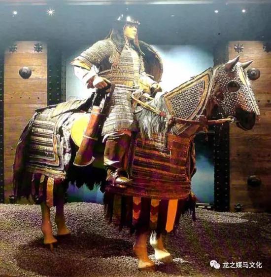 藏族古骑士战马装备包含具装和马具两部分。藏族古具装由面帘、马颈甲、当胸、马身甲、搭后、尾护几个部分组成,其中,最具特色的是其鸟翼形的马颈甲。