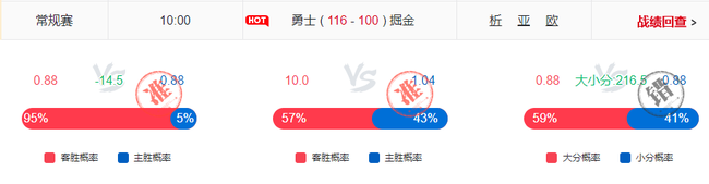 今日小炮上演逆天表现,掘金惨遭逆转,以16分之差在主场爆冷不敌勇士,小炮直击赛果,擒获10倍大冷!