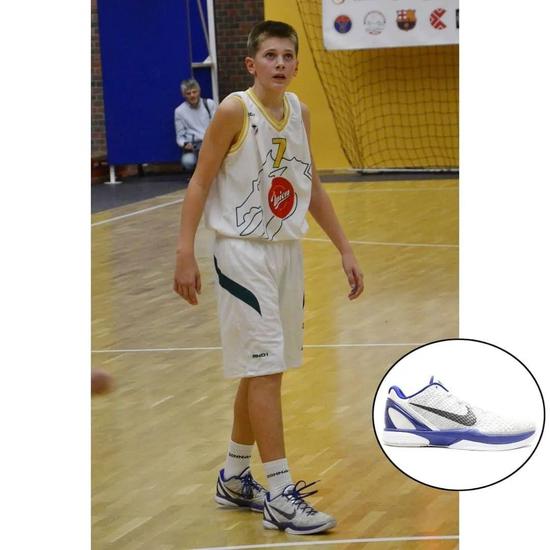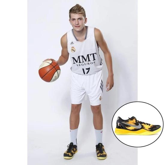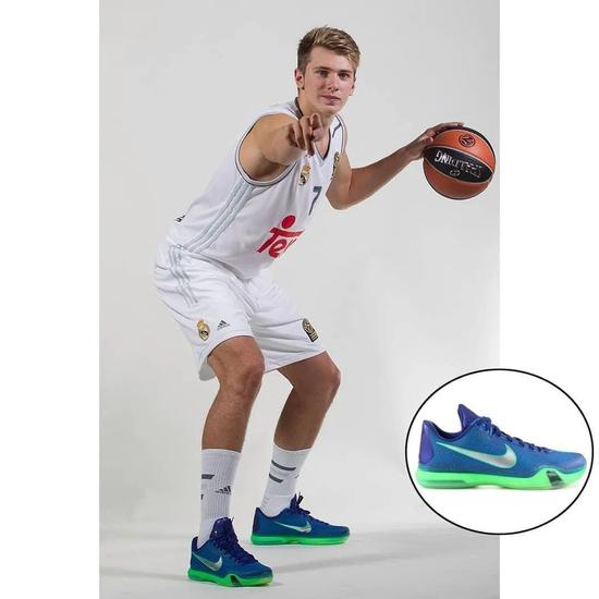 东契奇一路成长,上脚过包括科比6、科比8、科比10等多款科比的签名球鞋。